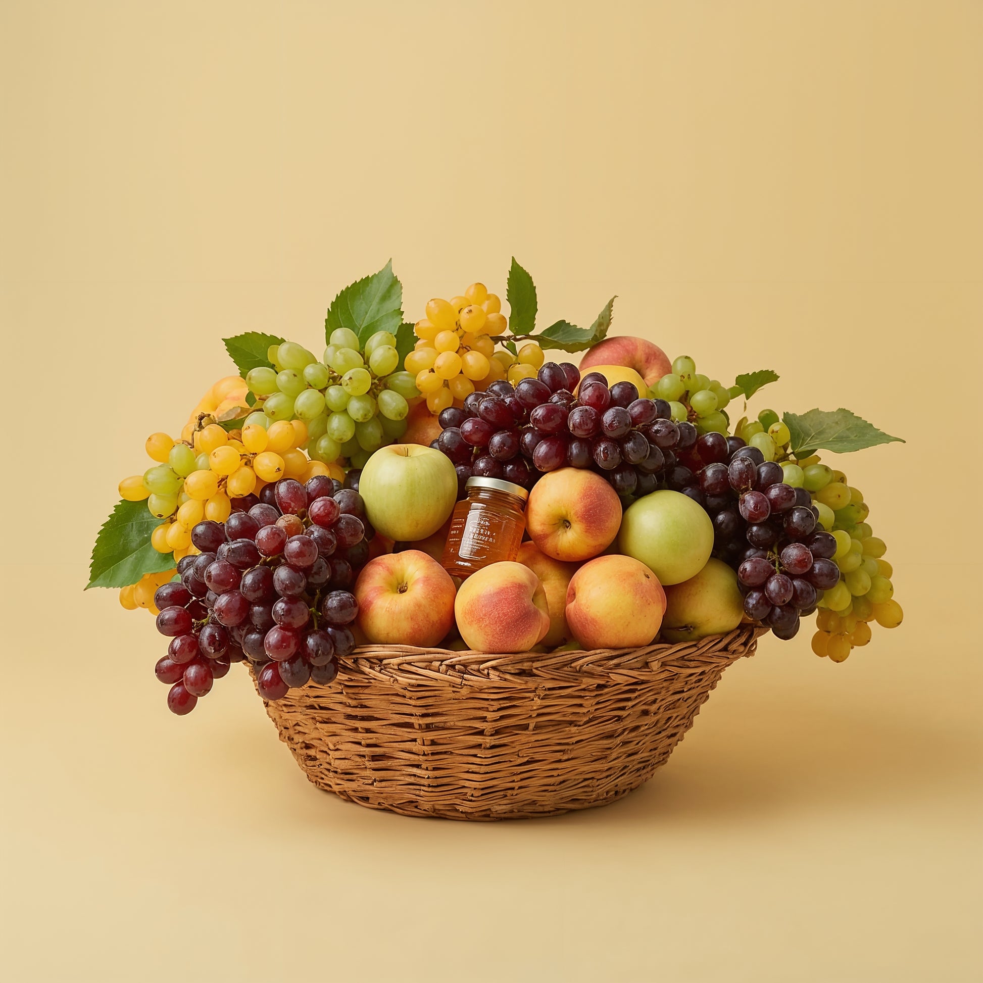 The Bountiful Bloom is a meticulously curated fruit basket designed to impress. This 6.0 kg arrangement showcases a vibrant spectrum of fresh produce—crimson grapes, verdant apples, and golden peaches—complemented by a jar of artisanal local honey. Each element is thoughtfully selected to create visual harmony while delivering genuine quality and taste. The composition celebrates natural abundance, making it an ideal gift for those who appreciate both aesthetic refinement and wholesome indulgence. Perfect for corporate gifting, celebrations, or expressing gratitude with sophistication.