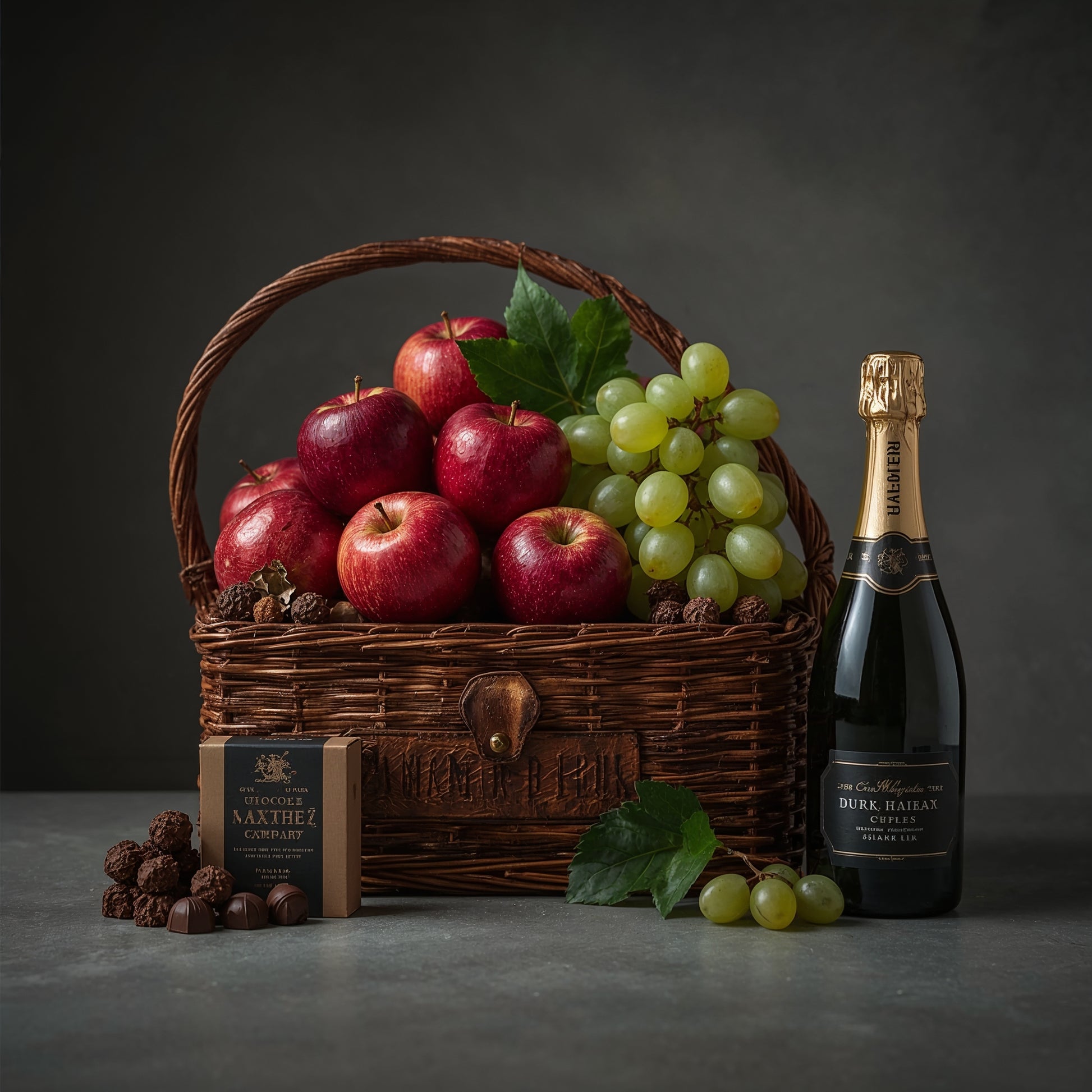 The Executive Signature Collection represents the pinnacle of curated gifting. This distinguished assortment showcases meticulously hand-polished fruit at peak ripeness, complemented by artisanal dark chocolate truffles and a refined non-alcoholic sparkling cider. Presented in an elegant embossed leather-look hamper, this 7.5 kg collection makes an unforgettable impression for those who appreciate quality and sophistication.
